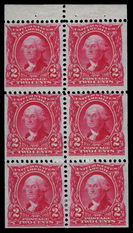 1903, 2¢ Washington, booklet pane of 6 (Scott 301c), Feinst. Scott $500.