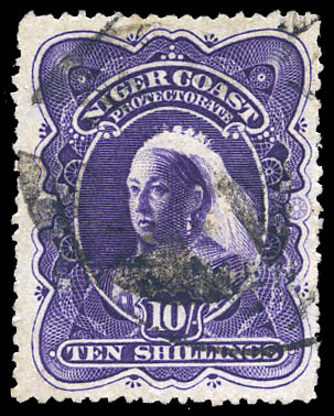 Nigeria: Niger Coast Protectorate, 1898, Queen Victoria, 10s deep violet, perf. 14½-15 (SG 74. Scott 63), the high value of the set, Feinst. SG £300 ($380). Scott $300.