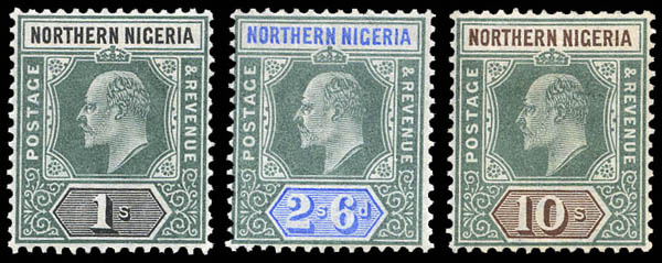 Nigeria: Northern Nigeria, 1902, King Edward VII, ½d to 10s complete, Crown CA watermark (SG 10/18. Scott 10-18), set of 9, Feinst. SG £130 ($170). Scott $121.