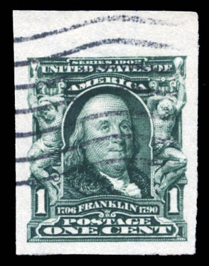 1906, 1¢ Franklin, imperf (Scott 314), Luxus. Scott $18.