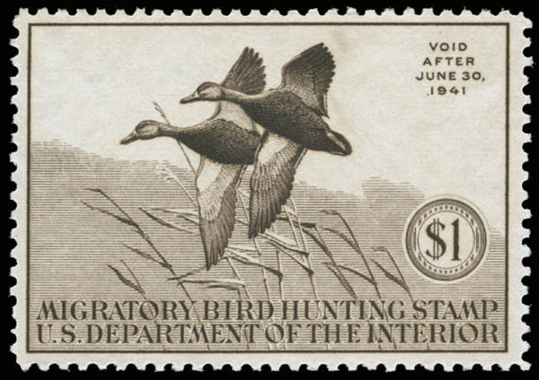 Hunting Permit, 1940, $1 Black Mallards (Scott RW7), Feinst. Scott $250.