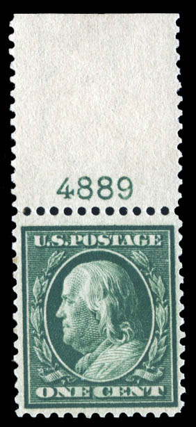 1909, 1¢ Franklin, bluish paper (Scott 357), very fine to extremely fine. Scott $190.