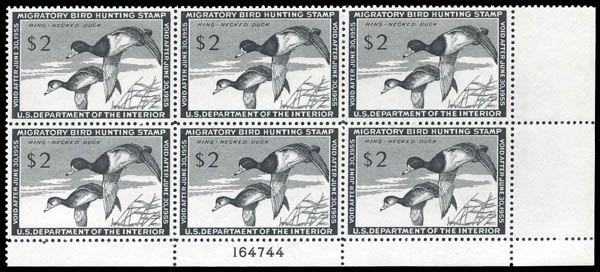 Hunting Permit, 1954, $2 Ring-Necked Ducks (Scott RW21), Kabinettstück. Scott $550.