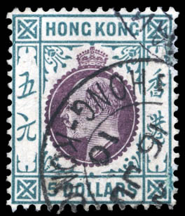 Hong Kong, 1905, King Edward VII, $5 purple & blue green (Scott 107), Multiple Crown CA watermark, Fein. Scott $450. SG 89; £475 ($560). Yang 89.