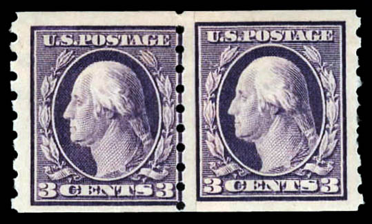 1911, 3¢ Washington, S.L. watermark, horizontal coil (Scott 394), Feinst. Scott $150.