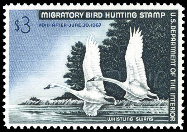 Hunting Permit, 1966, $3 Whistling Swans (Scott RW33), Pracht. Scott $100.