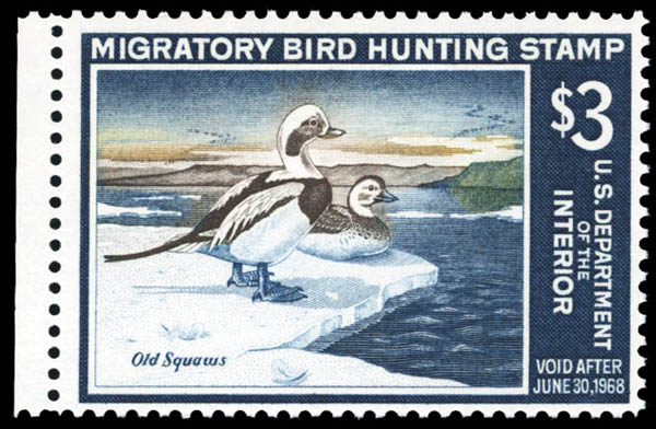 Hunting Permit, 1967, $3 Old Squaw Ducks (Scott RW34), Pracht. Scott $100.