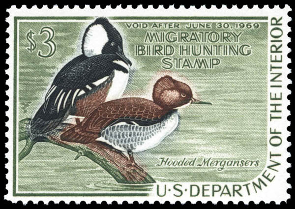 Hunting Permit, 1968, $3 Hooded Mergansers (Scott RW35), Pracht. Scott $65.