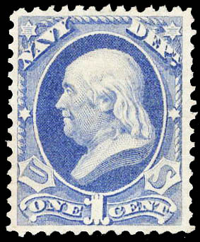 Navy Dept., 1873, 1¢ ultramarine (Scott O35), very fine to extremely fine. Scott $75.