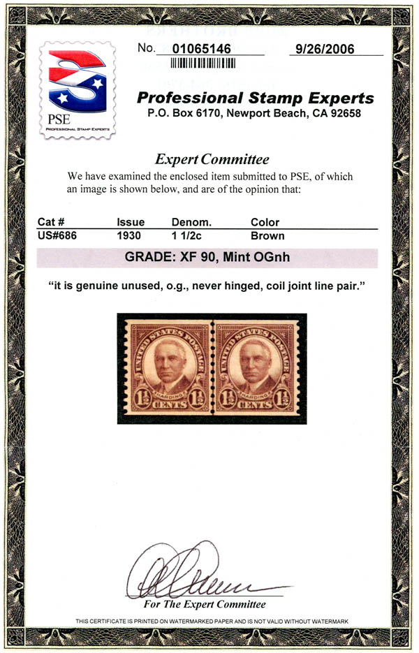 1930, 1½¢ Harding, rotary press coil (Scott 686), XF 90. SMQ $75.