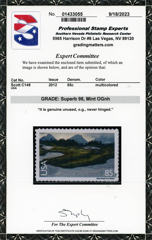 Airmail, 2012, 85¢ Glacier National Park (Scott C149), SUP 98. SMQ $85.