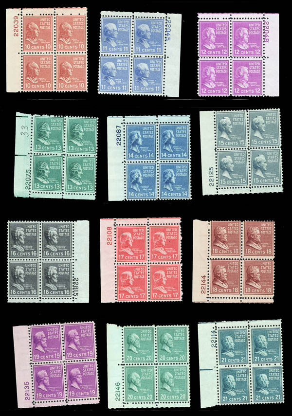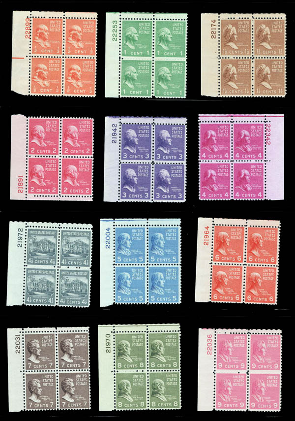 1938, Presidentials, ½¢ to 50¢ (Scott 803-831), Pracht. Scott $158.
