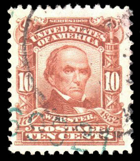 1903, 10¢ pale red brown (Scott 307 var.), on vertically ribbed paper; unlisted Scott variety, blue and black light cancels, Very Fine.