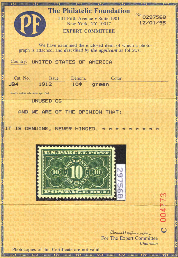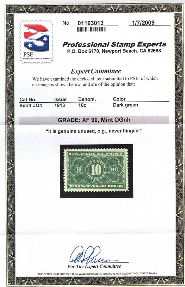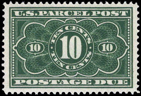 Parcel Post Postage Due, 1913, 10¢ dark green (Scott JQ4), XF 90. Scott $290. SMQ $750.
