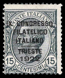 Italy, 1922, 15c Trieste Philatelic Congress (Scott 142B. Sassone 124), Fein. Scott $225. Sassone €300 ($290).