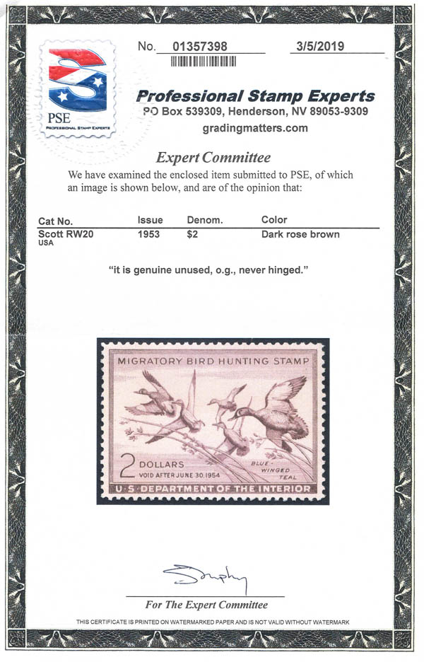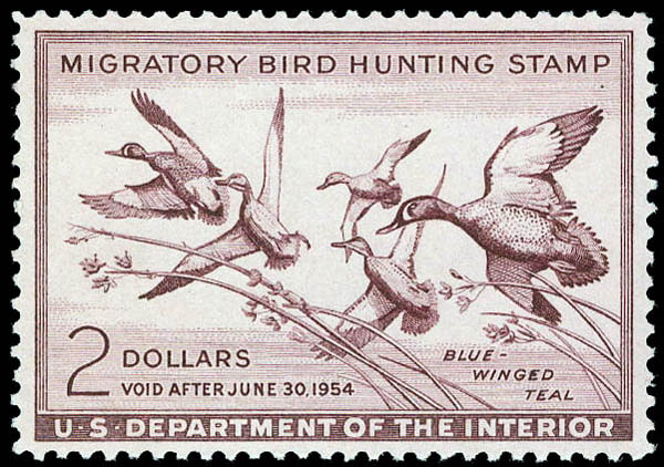 Federal Duck Stamp, 1953, $2 Blue-winged Teals (Scott RW20), Pracht. Scott $90.