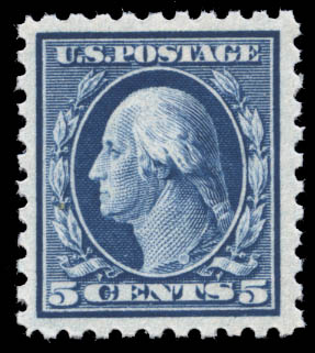 Los 529![]() ![]() 1914, 5¢ blue (Scott 428), well centered within large margins, with bright fresh color, a premium example, o.g., never hinged, Very Fine, with photocopy of 2018 P.S.E. certificate. Scott $75. Estimate $50 - 75. |