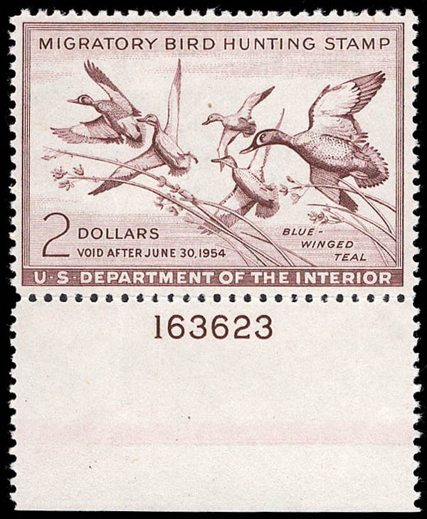 Hunting Permit, 1953, $2 Blue-Winged Teals (Scott RW20), Kabinettstück. Scott $90.
