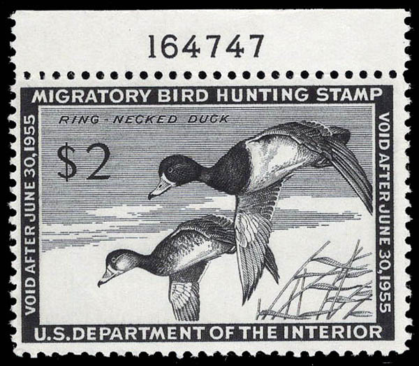 Hunting Permit, 1954, $2 Ring-Necked Ducks (Scott RW21), Feinst. Scott $85.
