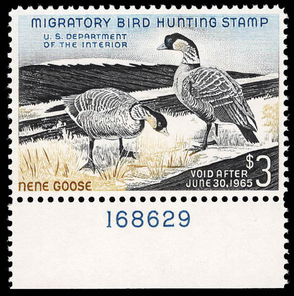 Hunting Permit, 1964, $3 Nene Geese (Scott RW31), Kabinettstück. Scott $100. SMQ $160.