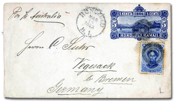 Hawaii, 1889, cover from Honolulu to Germany, Feinst. Scott 39, U4.
