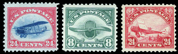 Airmail, 1918, 24¢ Jenny, plus 1923, 8¢ Propeller; and 1923, 24¢ Biplane (Scott C3, C4, C6), a group of 3, Feinst. Scott $295.