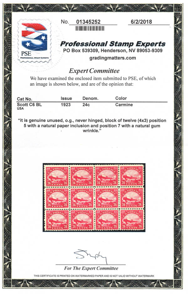 Airmail, 1923, 24¢ Biplane (Scott C6), Feinst. Scott $1,560.