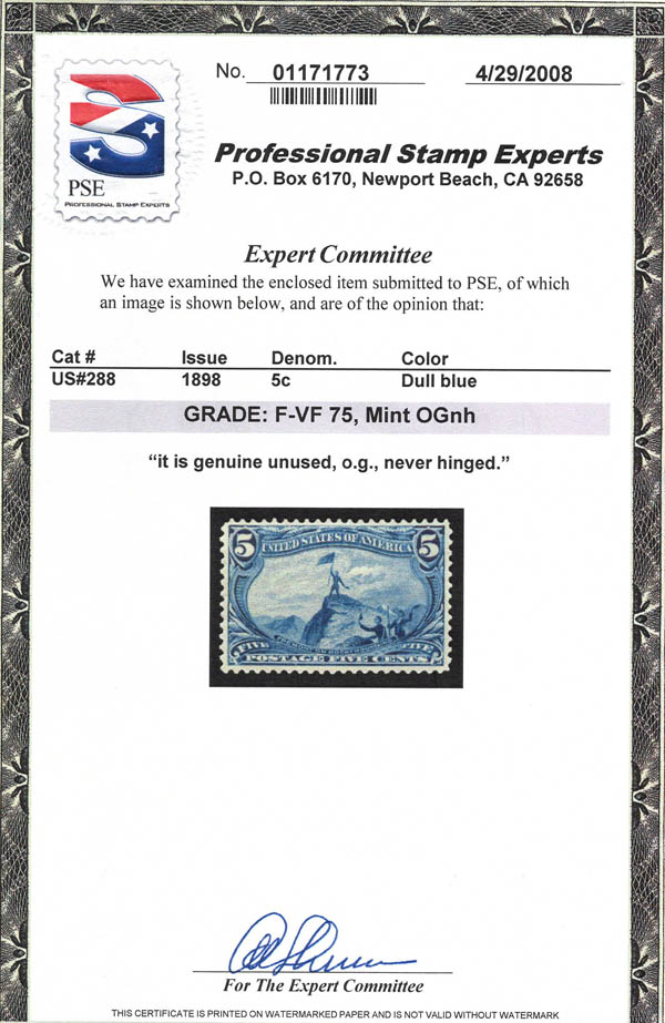 1898, 5¢ Trans-Miss. (Scott 288), Feinst. Scott $290. SMQ $200.