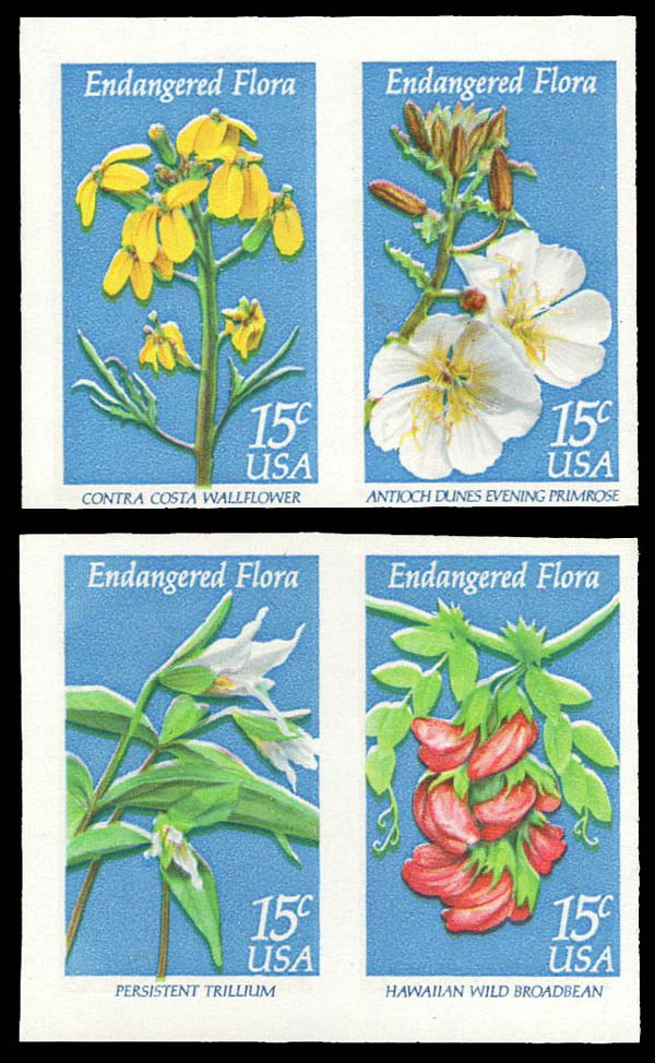 1979, 15¢ Endangered Flora, imperf pairs forming a block (Scott 1786b), Pracht. Scott $200 as a block.