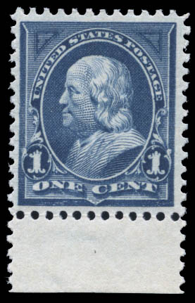 Los 71![]() ![]() 1895, 1¢ blue (Scott 264), a superlative example, beautifully well centered, o.g., never hinged, Extremely Fine and choice, with photocopy of 2019 P.F. certificate for block. Scott $18. Estimate $30 - 40. |