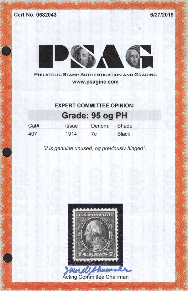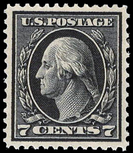 1914, 7¢ Washington, black, S.L. watermark, perf. 12 (Scott 407), XF-SUP 95. Scott $70. SMQ $200. Scott Stamp Values $200.