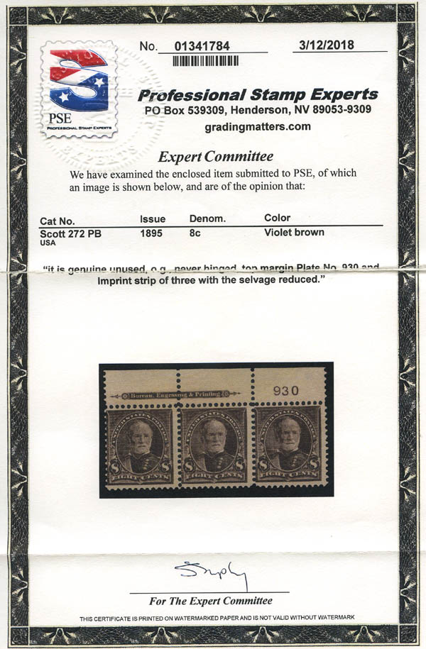 1895, 8¢ Sherman, violet brown, D.L. watermark (Scott 272), Fein. Scott $750.