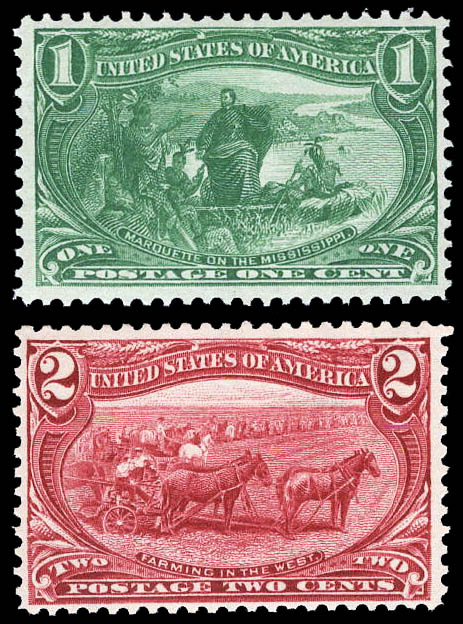 1898, 1¢ and 2¢ Trans-Miss. (Scott 285, 286), Feinst. Scott $148.
