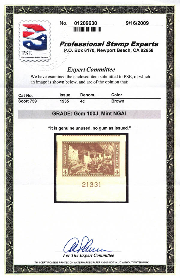 1935, 4¢ Mesa Verde National Park, imperf. (Scott 759), GEM 100 J. SMQ $85 for plain 100.