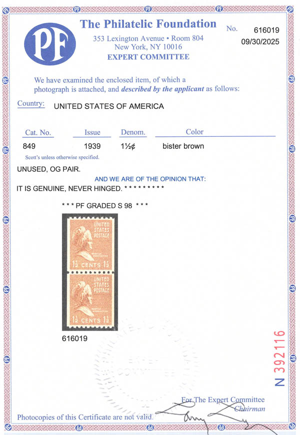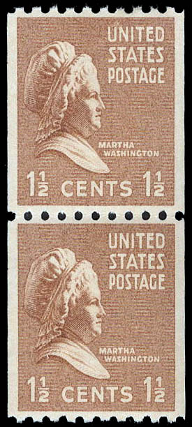 1939, Presidential Issue, 1½¢ Martha Washington, vertical coil, perf. 10 horizontally (Scott 849), SUP 98. SMQ $325.
