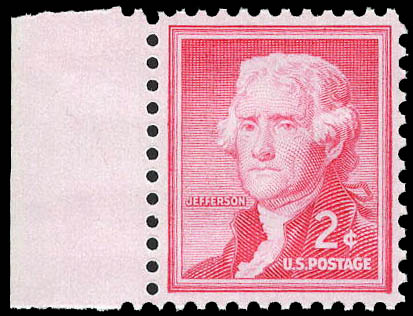 1954, Liberty Issue, 2¢ Jefferson, experimental Silkote paper (Scott 1033a), XF 90. Scott $275. SMQ $300.