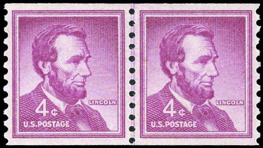 1958, Liberty Issue, 4¢ Lincoln, horizontal coil, large perf. holes, dry printing (Scott 1058), SUP 98. SMQ $260.