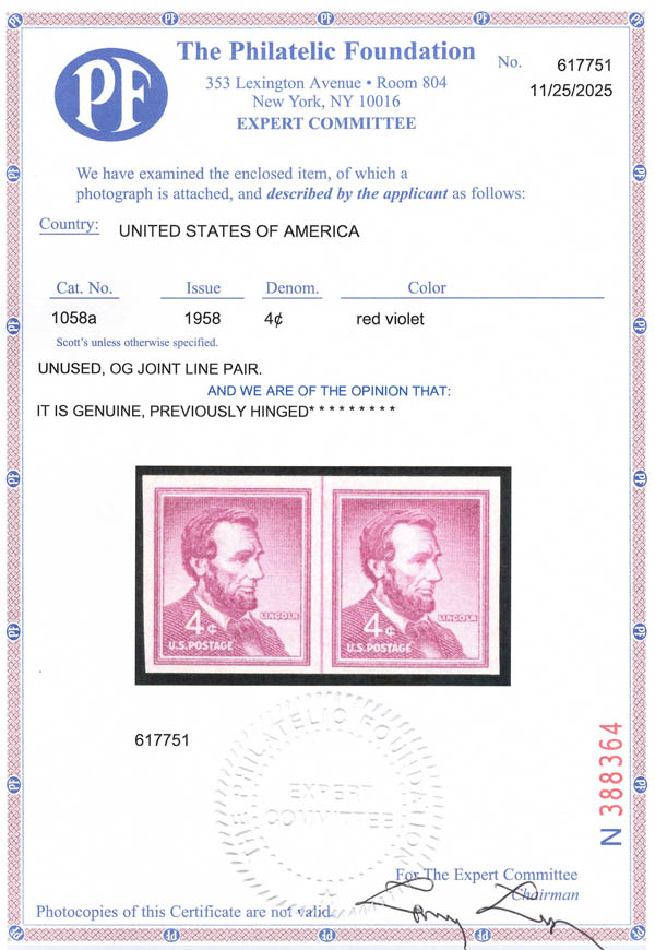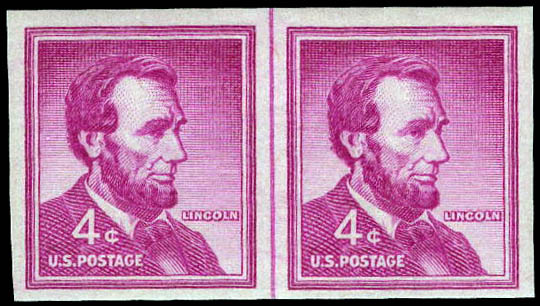 1958, Liberty Issue, 4¢ Lincoln, horizontal coil, imperf. pair (Scott 1058a), Pracht. Scott $225 for n.h.