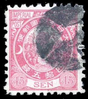Japan, 1877, Old Koban, 45s carmine (J.S.C.A. 76), neat cancel, Fine to Very Fine. J.S.C.A. 130,000 yen ($1,170). Scott 67; $600.