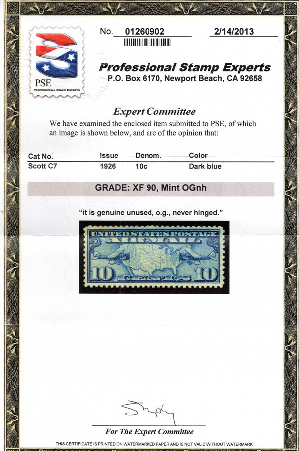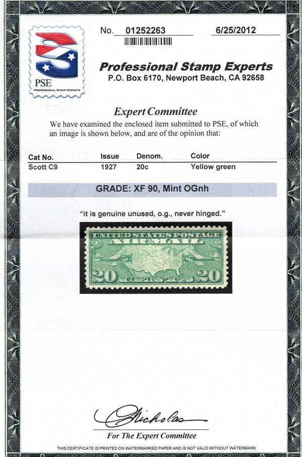Airmail, 1926-27, Map & Planes complete (Scott C7-C9), set of 3, o.g., never hinged, Extremely Fine, all with 2013 P.S.E. certificates graded XF 90. Scott $21. SMQ $105.