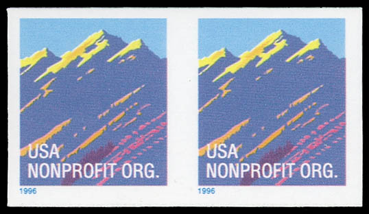 1996 (5¢) Mountain and "Nonprofit Org." coil, imperf. pair (Scott 2904c), o.g., never hinged, Extremely Fine. Scott $250.