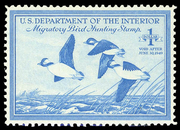Lote 1176![]() ![]() Federal Duck Stamp, 1948, $1 Buffleheads (Scott RW15), magnificent centering, o.g., never hinged, Extremely Fine to Superb, ex-Killien, with 2006 P.S.E. certificate graded XF-SUP 95. Scott $60. SMQ $200. Estimate $150 - 200. |