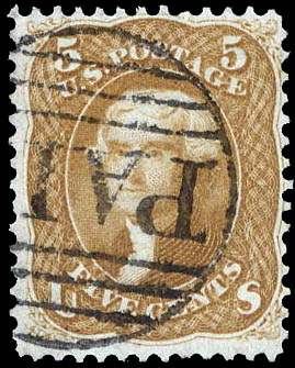 1861, 5¢ Jefferson, buff (Scott 67), rich color, neat premium PAID cancel, Fine. Scott $775.
