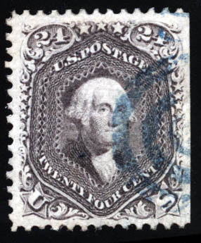 1862, 24¢ red lilac (Scott 70), well centered with good color, blue target cancel; natural s.e. at right, Extremely Fine.
