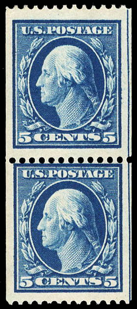 Lote 136![]() ![]() 1909, 5¢ Washington, blue, D.L. watermark, coil, perf. 12 horizontally (Scott 351), pair, o.g., top stamp hinged, bottom stamp never hinged, top stamp is Extremely Fine, bottom stamp is Fine, with 2025 P.S.A.G. certificate. Scott $400. Estimate $400 - 600. |
