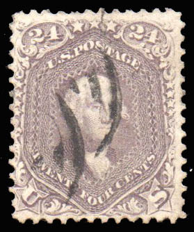 1863, 24¢ grayish lilac (Scott 78a), well centered for this issue, lightly canceled, almost Very Fine.