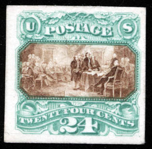 1869, 24¢ green & violet, plate proof on card (Scott 120P4), nearly Very Fine.