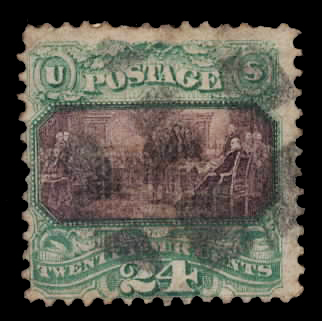 1869, 24¢ green & violet (Scott 120), fairly light cancel, about Fine.