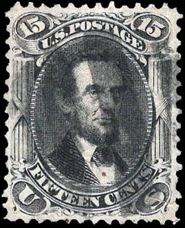 1867, 15¢ Lincoln, black, F. grill (Scott 98), Very Fine. Scott $300.