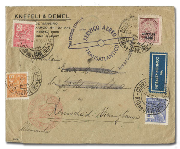 Brazil, 1933 (Jun 3-13), 2nd South America Flight (Sieger 216A), cover to Germany with all proper postmarks and cachets. Minor cover edge wrinkles, Fine to Very Fine.